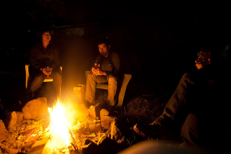 | Enjoying the smores, beer (from chalices), and the awesome fire. |